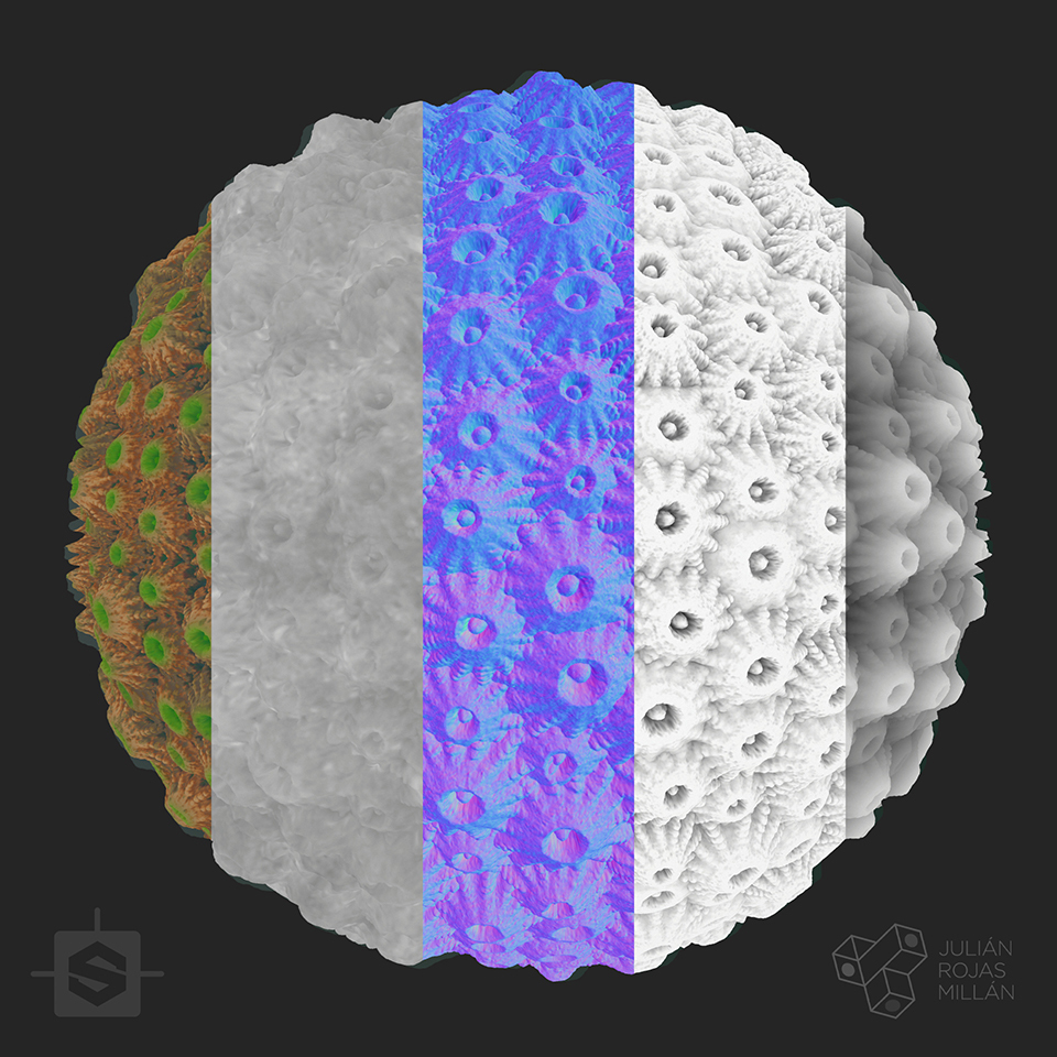 - Substance Designer .sbs file of the Coral A material, with a commented and organized graph so anyone can follow and study the creation of the material from scratch.